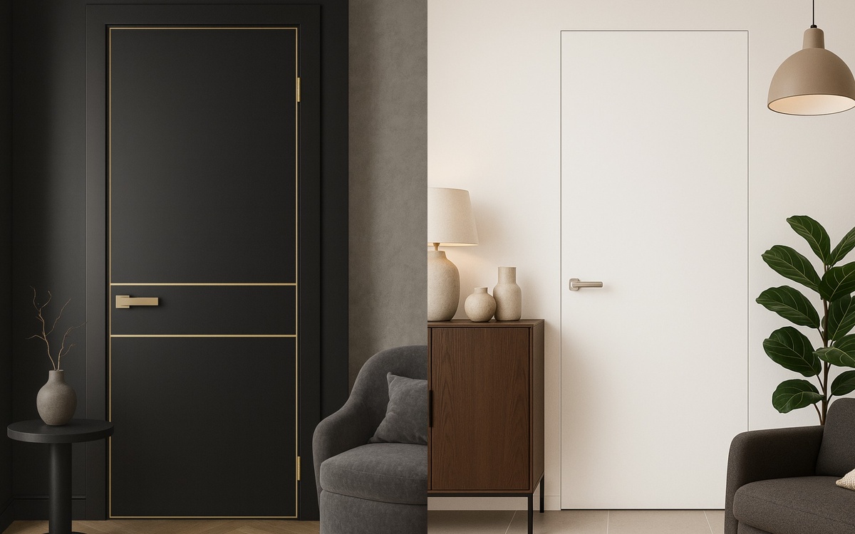 – пространство кажется чуть больше. Особенно это заметно в небольших квартирах и узких коридорах. Такое решение хорошо работает в современных интерьерах: минимализм, скандинавский стиль, спокойная классика. Если интерьер построен на деталях и декоре, полностью “прятать” двери не всегда имеет смысл. Чаще всег