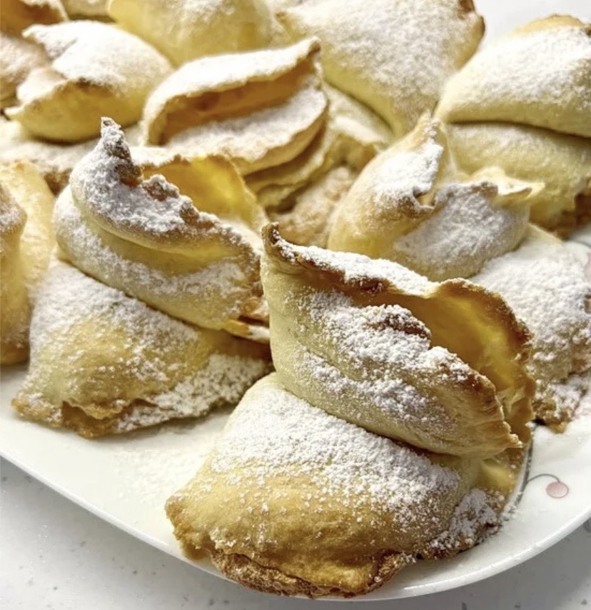 Еще это печенье называют как «Крылья ангела» или «Розочки». В отличие знакомого всем хвороста, эта выпечка печется в духовке и получается особенно воздушной, но интереснее тем, что внутри нежная начинка.