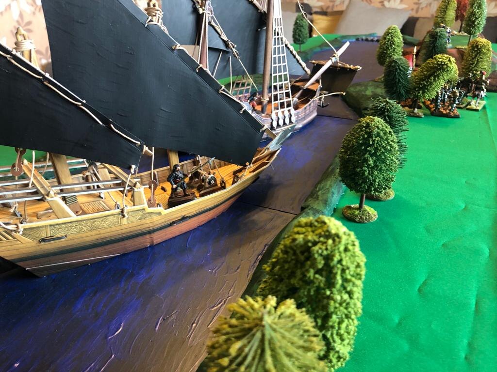 Оставшиеся три каравеллы и один тихоходный когг были оставлены в море, в лиге от берега.