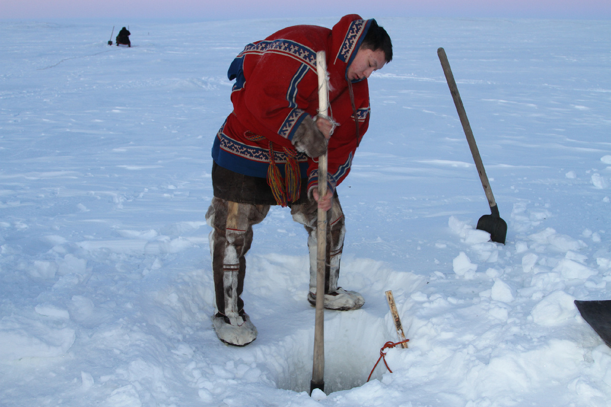 – В молодости я рыбачил. Это была работа. Рыбаками трудились и взрослые, и молодёжь. Многих сейчас уже нет. Мне было лет двадцать или чуть больше. Мы рыбачили на Обской губе. Рыбу сдавали. Мы просыпались рано утром. В шесть утра выдвигались пешком в сторону Губы. Сложно приходилось в тёмное время года. В сильные морозы майна сильно застывала, приходилось долго работать пешнёй. Мы сдавали ряпушку. Домой возвращались за полночь. Усталость была сильная, иногда ложились без чая. А утром рано вновь выдвигались на работу, – рассказывает Пупта Сэрпиво, житель Сеяхинской тундры.