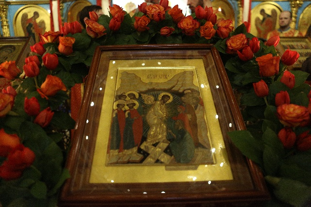 Сам Он воскрес, расторгнув узы смерти, и нас воскресил, расторгнув сети наших грехов.