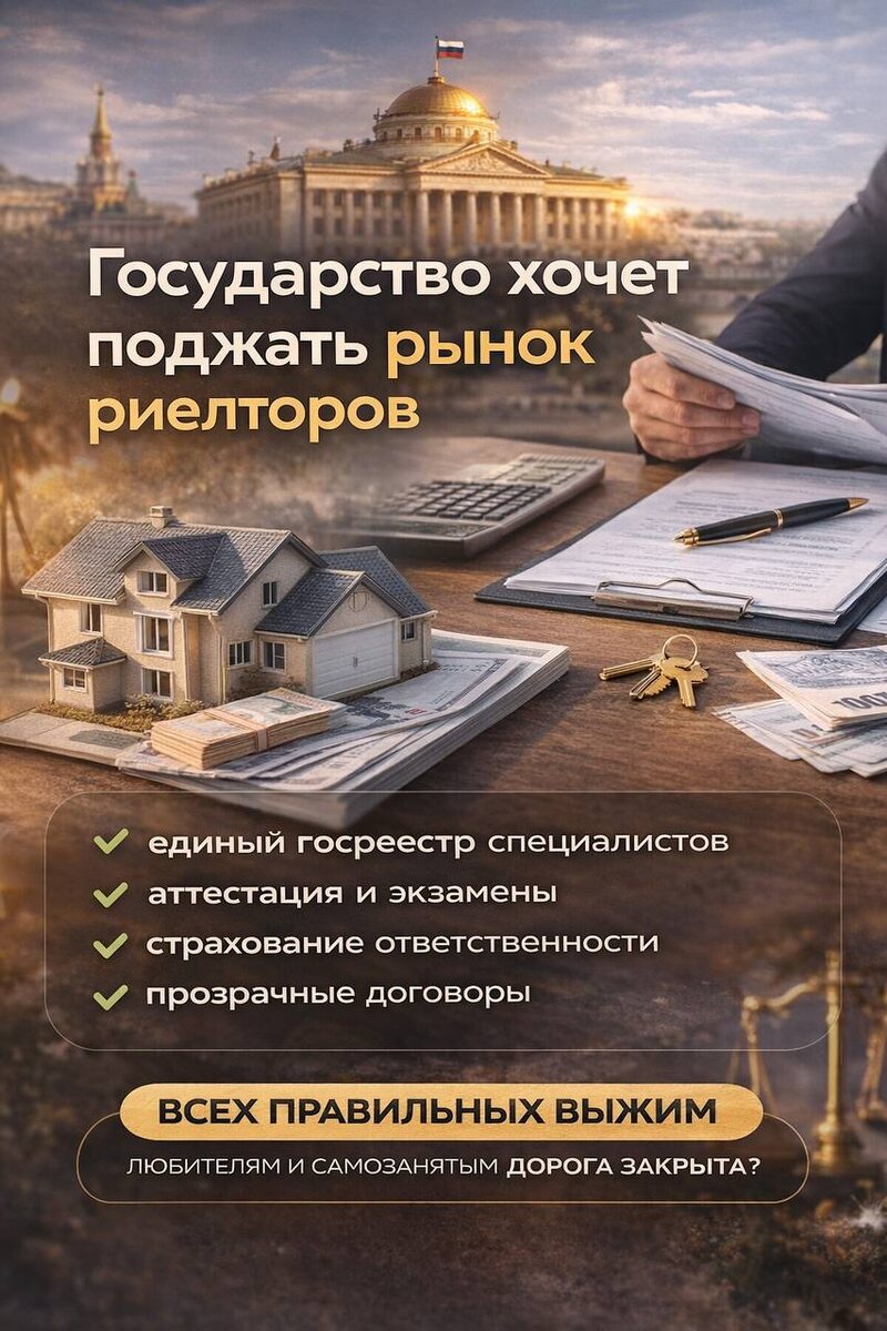 В Совете Федерации разработали и обсуждают концепцию нового закона о регулировании риелторской деятельности 🏛️📜. По словам Николая Журавлева, задача простая: обелить рынок, защитить людей от мошенников 🛡️ и сделать систему комиссий более прозрачной 💰. Что хотят ввести: — единый государственный реестр 📋 Работать смогут только те специалисты и компании, которые туда включены ✅ — самозанятым и физлицам хотят закрыть возможность работать на рынке 🚫 Оказывать услуги смогут только юрлица и ИП 🏢 — обязательное подтверждение квалификации🎓 Обсуждается аттестация или государственный экзамен, предварительно раз в 5 лет ⏳ — требования к репутации Люди с судимостью по тяжким и особо тяжким статьям в профессию зайти не смогут — страхование ответственности Если риелтор допустил ошибку, клиент должен иметь возможность получить компенсацию 💸 — прозрачность расчётов 📊 Все комиссии должны быть зафиксированы в официальных договорах 📝 Информация по сделкам должна быть доступна для налого