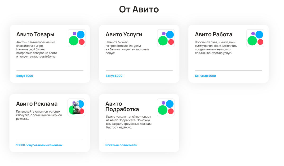 Условие простое: пополнить кошелёк Авито на первом месяце минимум на 5 000 ₽. Авито вернёт до 100% потраченного бонусами, максимум 50 000.