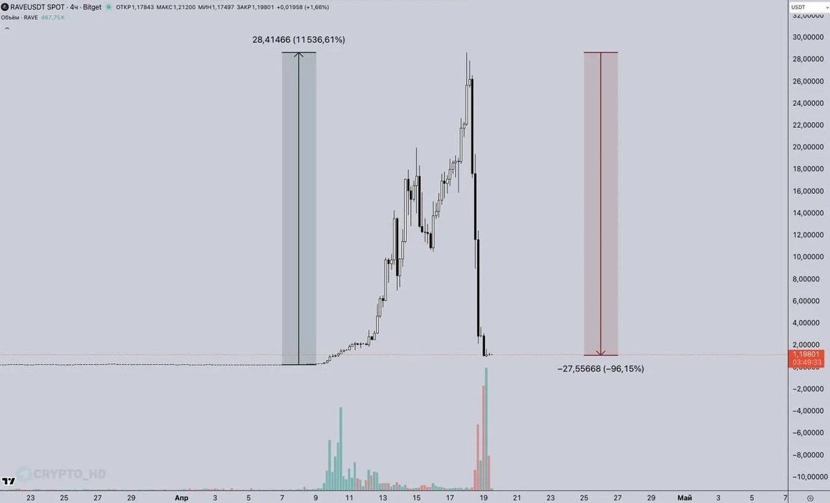 Токен RAVE вырос в 100 раз и рухнул на 96%: как Binance, Bitget и Gate оказались замешаны в манипуляциях