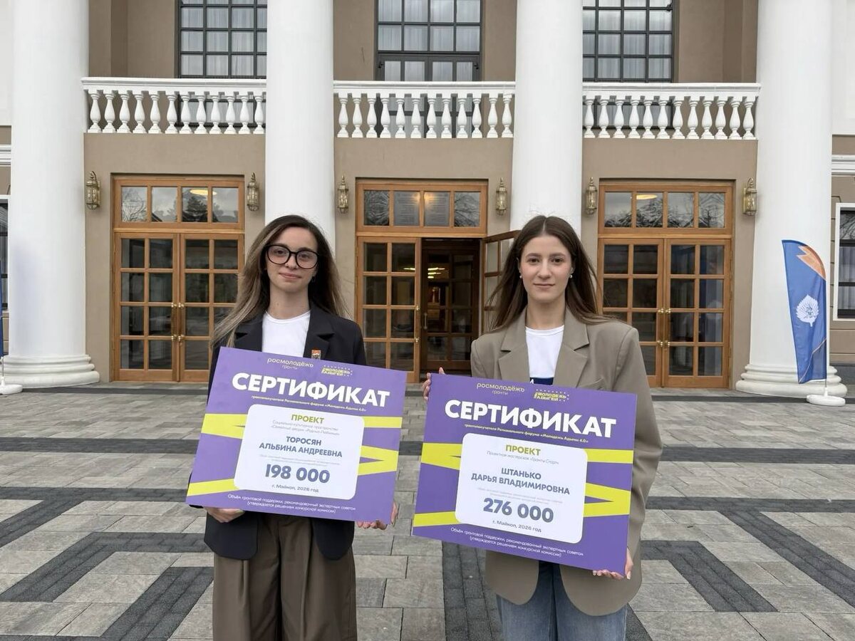 » Специалисты Молодёжного центра Майкопа Дарья Штанько и Альбина Торосян успешно защитили свои проекты на конкурсе «Росмолодёжь.Гранты» в рамках форума «Молодёжь Адыгеи 4.0». Всего в конкурсе приняли участие более 100 человек. Инициатива Дарьи Штанько «Проектная мастерская «Гранты.Старт» получила поддержку в размере 276 000 рублей. С сентября 2026 года для 16 школьников пройдёт практический интенсив по формированию из своих идей полноценных проектов с подачей готовых заявок на конкурс «Росмолодёжь.Гранты» в 2027 году. Занятия будут проходить на одной из площадок Молодёжного центра в центре города. Проект Альбины Торосян «Семейный дворик «Родные-Любимые» отмечен грантом в размере 198 000 рублей. В районе ЦКЗ на одной из площадок Молодёжного центра будет создано пространство для молодых семей. Здесь будут проходить мероприятия для всей семьи и для детей — от развивающих занятий до спортивных активностей. Открытие пространства запланировано на День семьи, любви и верности — 8 июля 2026