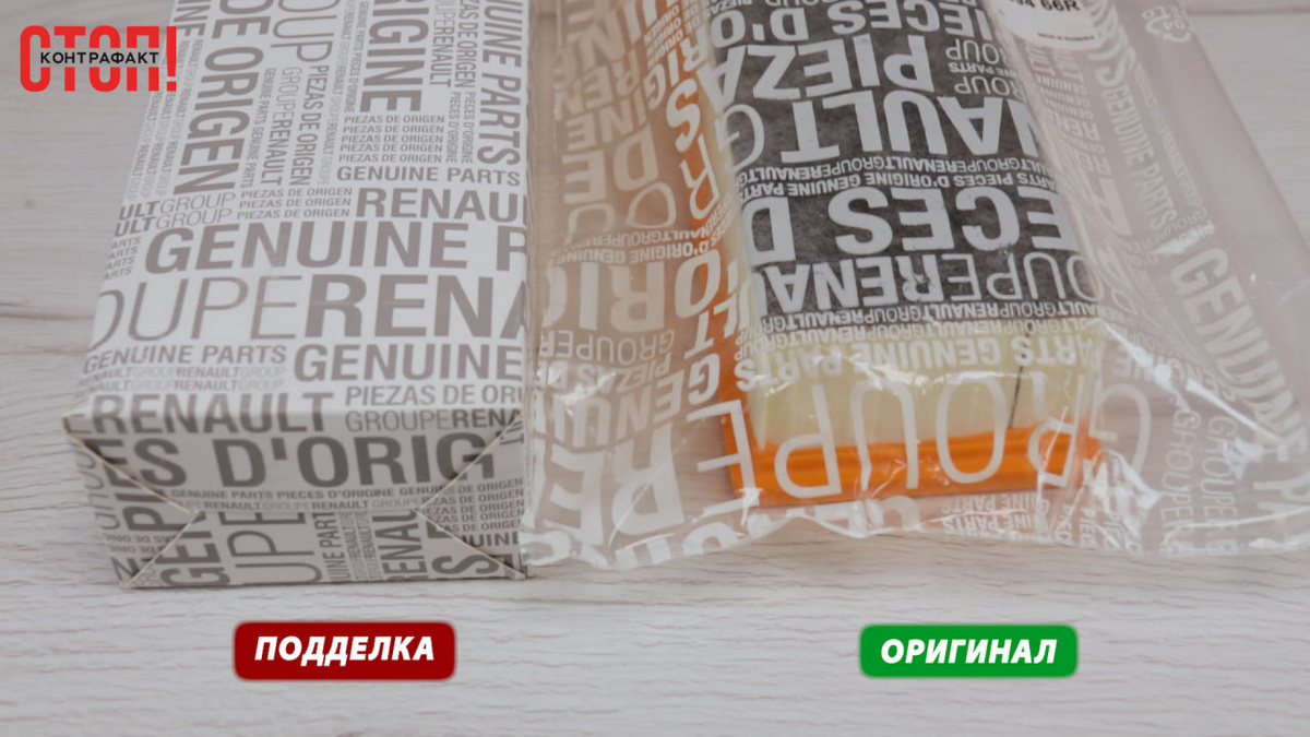 Рассказываем, как отличить оригинальный воздушный фильтр Renault 165469466R, применяемый на массовых автомобилях французского бренда, от поддельного. Показываем реальные признаки фальсификата и объясняем, чем он может быть опасен для двигателя. Оригинальный воздушный фильтр Renault 165469466R был приобретён в проверенном магазине за 860 рублей, подделка — на рынке за 400 рублей. Почти двукратная разница в цене — первый сигнал риска. На практике именно демпинг чаще всего указывает на фальсификат. Как отличить подделку по упаковке: ключевые признаки Оригинальный фильтр поставляется в простом полиэтиленовом пакете с белой маркировкой. Подделка — в более сложной упаковке: картонная коробка с фирменным дизайном и дополнительный запаянный пакет внутри. Визуально это может создавать ложное ощущение «более качественного» продукта. На оригинальной упаковке есть наклейка со штрихкодом, номером детали и страной производства — в нашем случае Румыния (Made in Romania). Наклейка содержит элементы за