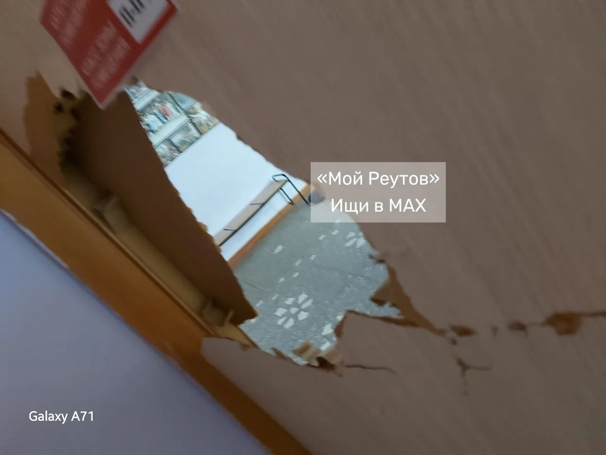 "4-я школа, Реутов!! Чёрная плесень под потолком, стена качается, воняет не пойми чем, на втором этаже разбита дверь в мясо, на третьем этаже нет куска потолка"