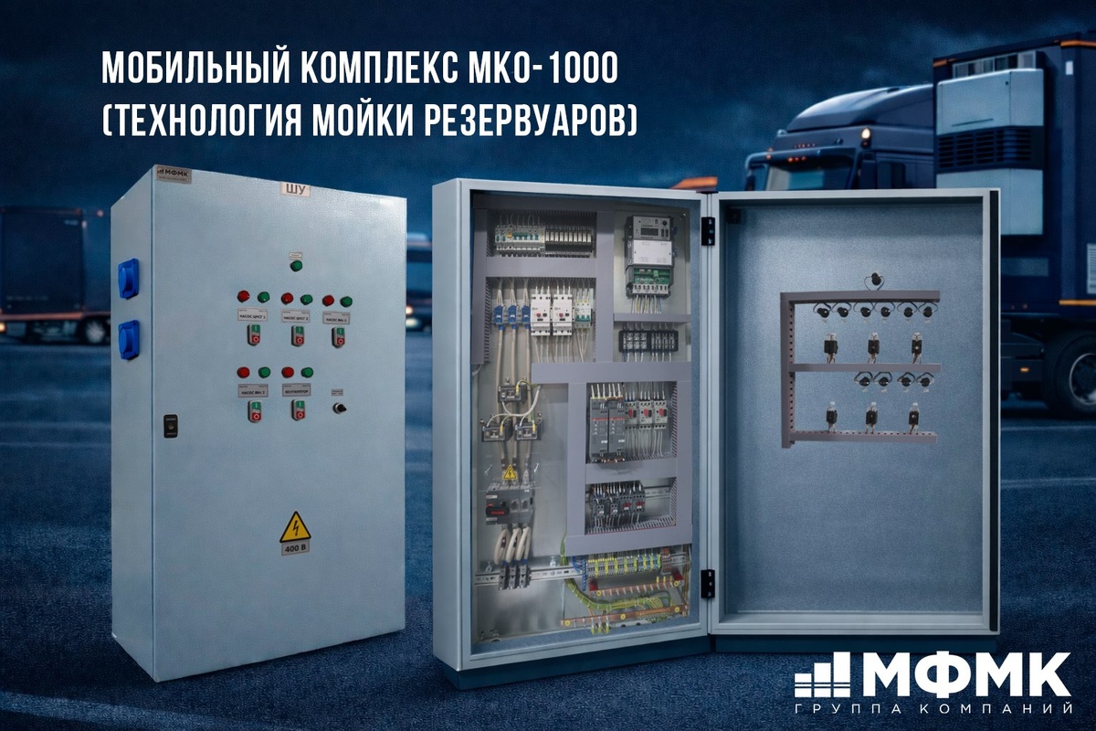 ). 📍 Проект: шкаф управления «Омега» В этом проекте оборудование размещено внутри Мобильного очистного комплекса МКО-1000 на базе грузового автомобиля с 40-футовым морским контейнером ООО "ГК Чистый мир": насосы, баки и вспомогательные системы работают как единый мобильный комплекс. Компоновка внутри кузова ограничена, а сама система эксплуатируется в движении — это определяет требования к надежности и размещению оборудования. 🎯 Задача Обеспечить централизованное управление оборудованием: — насосами — компрессором — вентилятором — освещением С учетом: — мобильной эксплуатации (вибрации, перемещения) — ограниченного пространства — удобства локального управления 🔧 Решение Разработан единый шкаф управления «Омега». Основные параметры: — 9 потребителей — установленная мощность 122 кВт — степень защиты IP66 Шкаф выполнен в настенном исполнении, что позволило встроить его в конструкцию кузова без потери доступа для обслуживания. Для насосов мощностью 18,5 кВт применены устро