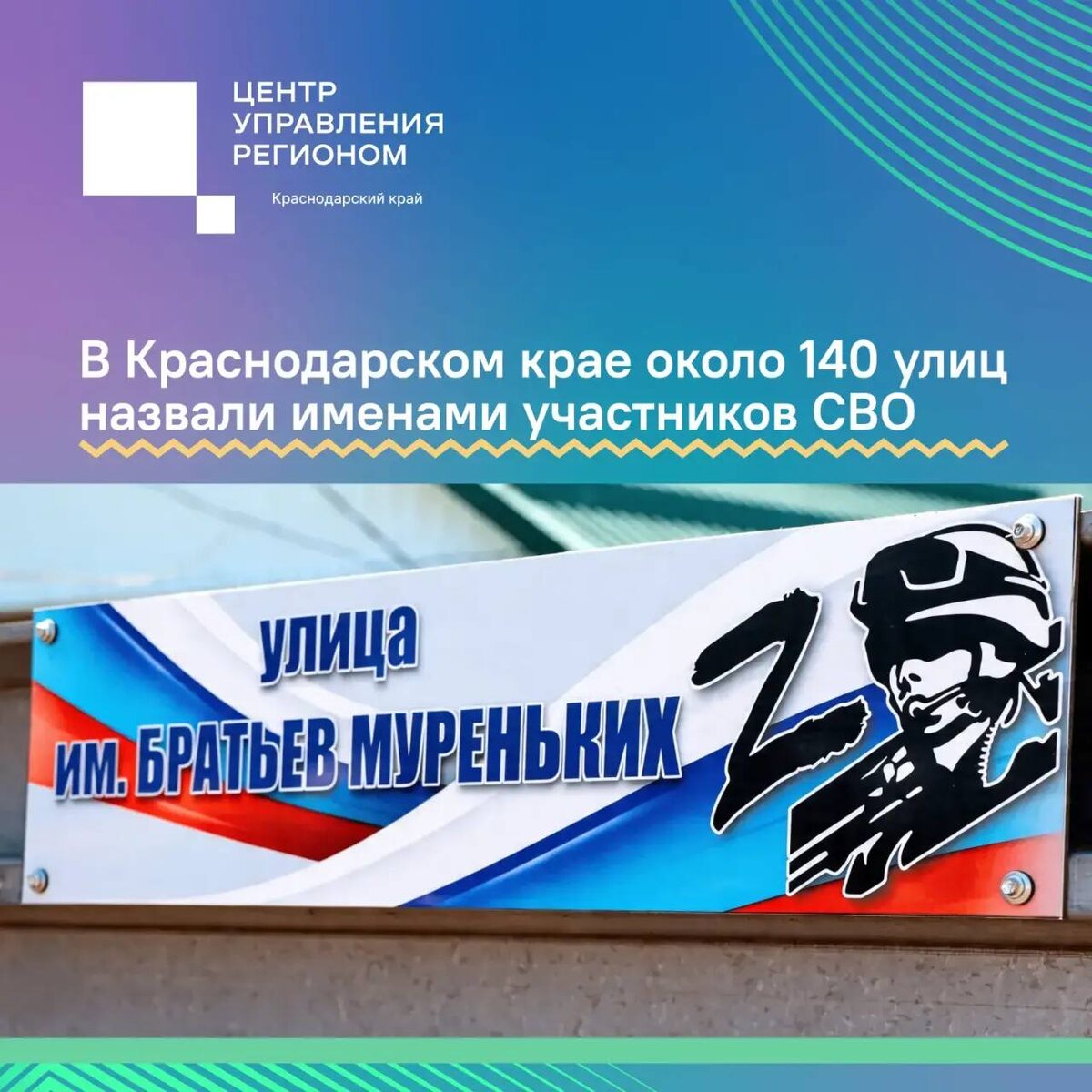 Всего в честь участников СВО в регионе назвали около 140 улиц. В Новороссийске именами героев спецоперации назвали 53 улицы, в Горячем Ключе — 27, в Динском районе — 12, в Успенском и Каневском районах — по 8, в Краснодаре и Темрюкском районе — по 5. Читайте нас в МАХ