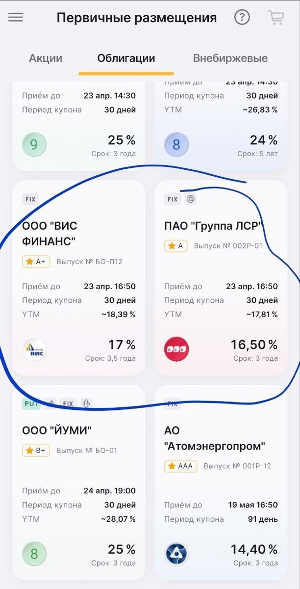 На этой неделе на первичке будет несколько выпусков, на которые, на мой взгляд, можно обратить внимание. 📌 Из того, что лично я бы выделил: Селигдар, Медскан, Группа ЛСР и ВИС Финанс. Но сразу скажу — смотреть здесь надо не просто на название эмитента, а на финальный купон и на долю бумаги в портфеле. 🟡 Селигдар — история мне понятная. Здесь, на мой взгляд, можно рассматривать 5–7% на эмитент, если финальный купон будет не ниже 15,5%. 🔵 Медскан — тоже выглядит интересно, но уже без лишнего разгона. Здесь я бы смотрел на 3–4% от портфеля, если купон дадут не ниже 16%. 🏗 Группа ЛСР — вариант рабочий, но тут обязательно надо смотреть на общую долю застройщиков в портфеле. Если с сектором и так уже есть перебор, то лезть туда лишний раз не стоит. Для себя здесь вижу 3–4%, если купон будет не ниже 16%. ⚠️ВИС Финанс — бумага спорная. За последнее время положение у эмитента, на мой взгляд, стало слабее, поэтому здесь я бы был аккуратнее. Максимум 2–3% от портфеля, и только если купон