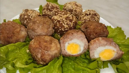 Мясные шарики, фаршированные вареным яйцом