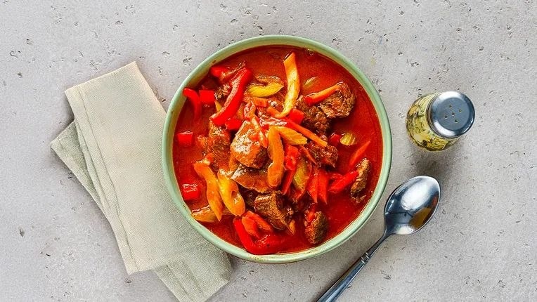 Нежное, сочное мясо в насыщенном томатном соусе, которое готовится практически само. Удобно заморозить заготовку, а перед ужином просто поставить в духовку. Комфортное блюдо на каждый день. 📖 Ингредиенты (на 4 порции): · Говядина (шейный или лопаточный отруб) — 800 г · Томатный сок (готовый) — 500 мл · Лук репчатый — 1 шт. · Морковь — 1 шт. · Сельдерей стеблевой — 1 стебель · Перец сладкий красный — 1 шт. · Сахар — 1 ч. л. · Соль, перец — по вкусу 🧑🏻🍳 Приготовление: 1. Подготовка заготовки (для заморозки): Нарежь мясо небольшими кубиками. Лук, морковь, сельдерей и сладкий перец тонко нарежь. 2. Замораживание: Смешай мясо с овощами, переложи в герметичный пакет или контейнер и заморозь. Подпиши дату и название. 3. Приготовление (из замороженной или свежей смеси): Разогрей духовку до 160°С. Выложи замороженную смесь в жаропрочную форму. Залей томатным соком. Добавь сахар, соль и перец. Накрой форму крышкой или фольгой. 4. Запекание: Запекай до мягкости мяса (около 1–1,5 часов).