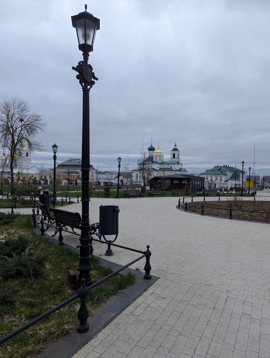 Арзамас - город холмистый. Вниз по дорожке на фото ниже и будет место действия на картине "Тройка" Василия Перова. Спуститься ниже и будет видна стена, которая на картине.