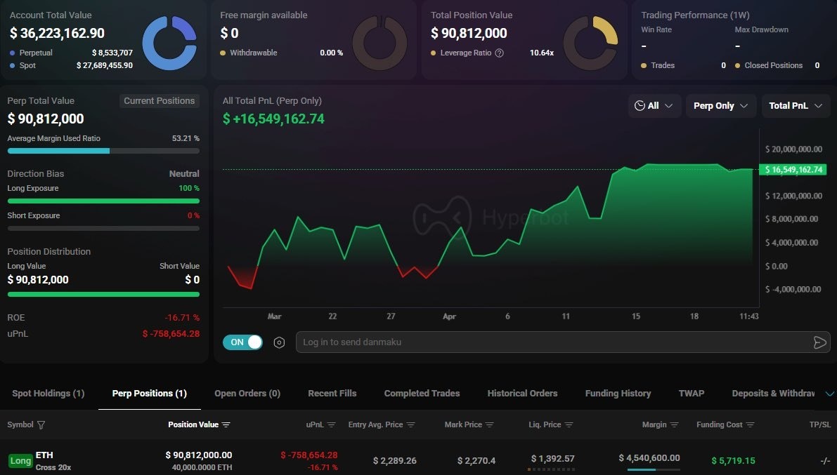 πΈΠΠΈΡ, ΠΊΠΎΡΠΎΡΡΠΉ Π·Π°ΡΠ°Π±ΠΎΡΠ°Π» $16,5 ΠΌΠ»Π½ ΠΏΡΠΈΠ±ΡΠ»ΠΈ Π²ΡΠ΅Π³ΠΎ Π·Π° 3 Π½Π΅Π΄Π΅Π»ΠΈ, ΠΎΡΠΊΡΡΠ» Π»ΠΎΠ½Π³ ΠΏΠΎ ETH Π½Π° ΡΡΠΌΠΌΡ $90,8ΠΌΠ»Π½ Ρ ΠΏΠ»Π΅ΡΠΎΠΌ 20x.