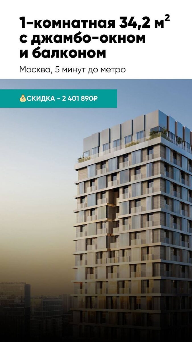 Скидка 2,4 млн₽ за 1-комнатную квартиру с балконом, эркером и джамбо-окном в ЖК, расположенном в окружении 16 парков 😊 Цена со скидкой 10%: 21 617 010₽ 24 018 900₽ Общая площадь: 34,2 кв.м 🌇632 080 р/м2 в ЖК бизнес-класса у Воронцовского парка ☺Ключи: 3 кв. 2029 😛Локация: Обручевский (ЮЗАО) ⚪️м. Калужская — 5 минут пешком ⚪️м. Воронцовская — 5 минут пешком ⚪️Усадьба Воронцово и Юго-Западный лесопарк — 5 минут транспортом ⚪️Дарвиновский музей, Большой Московский цирк на Вернадского, Рынок на Ленинском, КСК Битца и Битцевский лес — 10-15 минут транспортом ⚪️центр Москвы — 25 минут транспортом Какие плюсы по планировке: ⚪️просторная кухня ⚪️балкон ⚪️джамбо-окно ⚪️эркер ⚪️зоны для шкафов ⚪️панорамные окна ⚪️высокие потолки 3,1 м Что ещё интересного: ⚪️двор-парк от бюро BASIS с зонами для отдыха, общения и спорта ⚪️детская игровая комната, коворкинг, фитнес-зал и прогулочная аллея ⚪️гранд-лобби с общественной гостиной, курьерской зоной, колясочной и комнатой матери и ребенка ⚪️цен