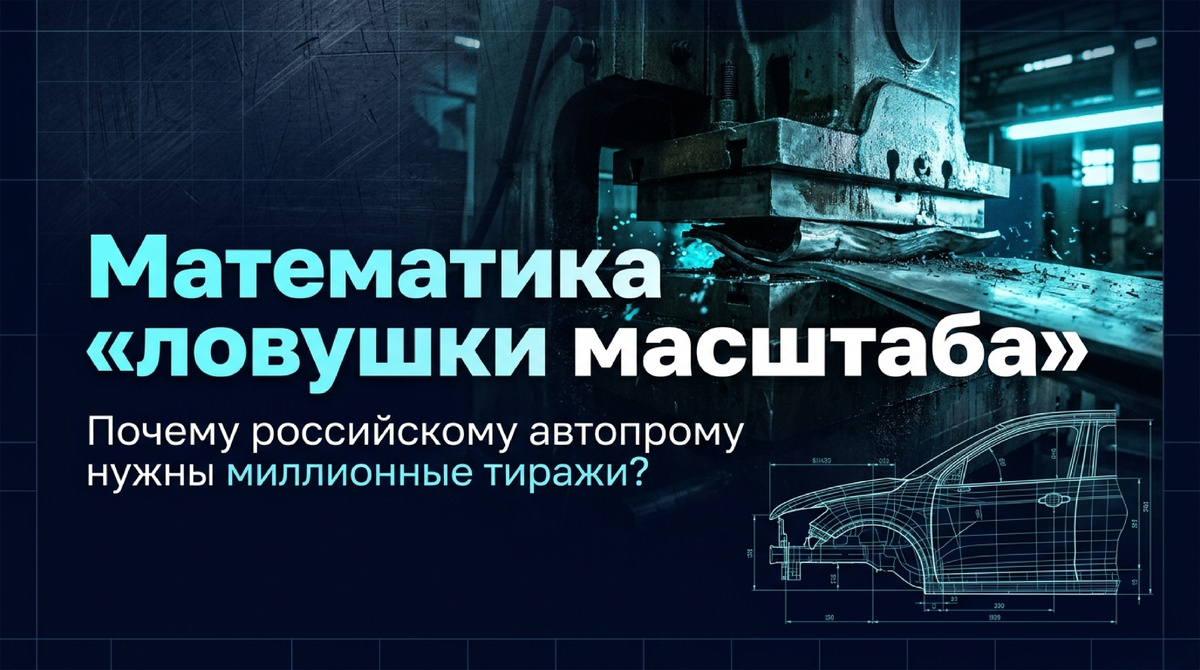Теперь добавьте к этому ещё один слой: порог окупаемости одной модели. По отраслевым оценкам, собственная автомобильная платформа начинает отбивать затраты на разработку при тираже от 200 000 до 300 000 единиц одной модели в год. Весь российский рынок — 1,5 млн на всех. Даже если бы одна марка захватила треть рынка, она едва достигала бы нижней границы окупаемости для единственной модели. А моделей нужно несколько.