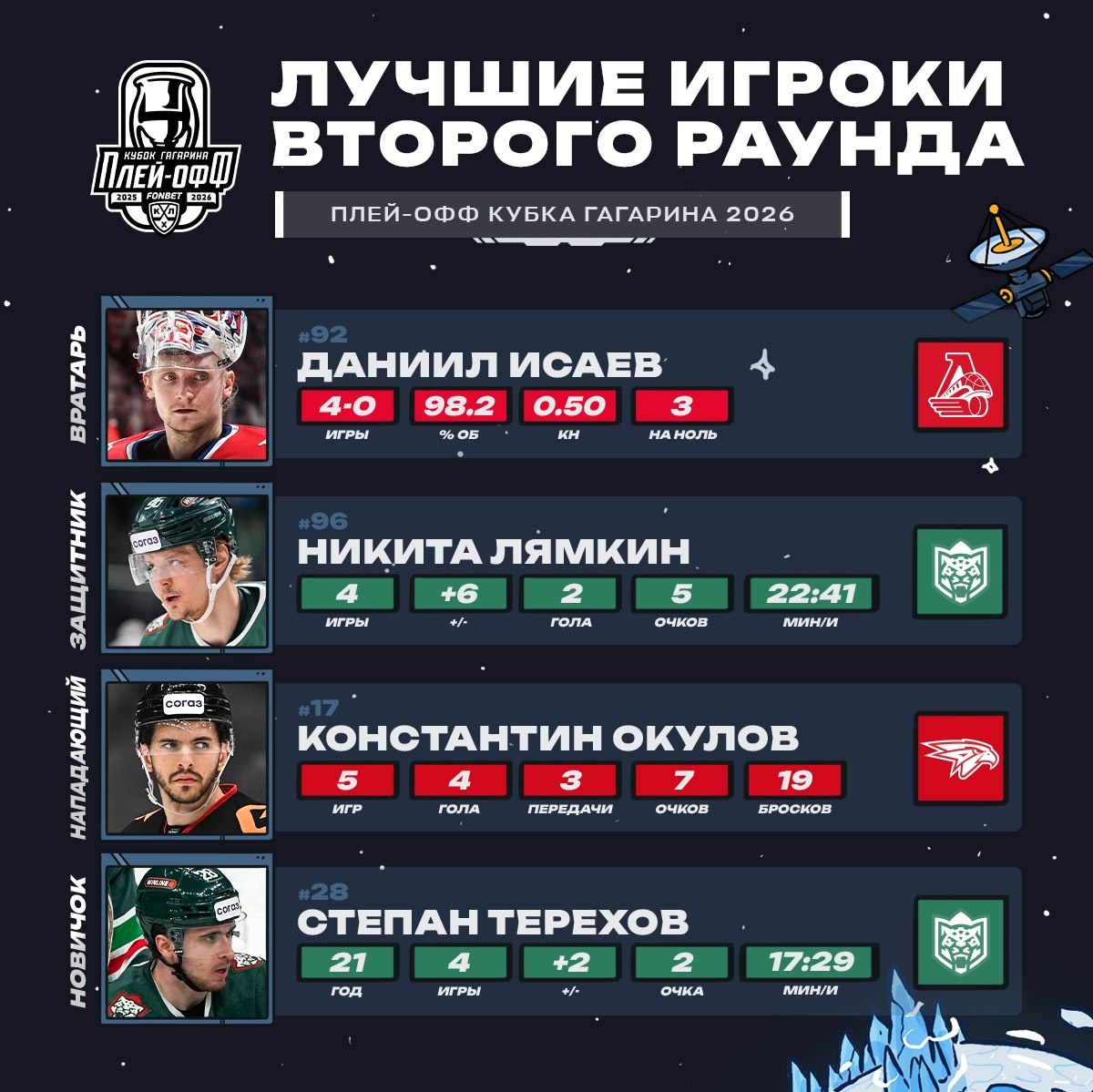 лучших игроков второго раунда Кубка Гагарина 2026.