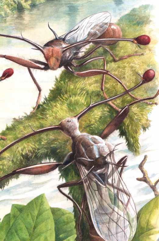 Мощные глаза помогают этому насекомому выделяться из толпы. Для большинства людей мухи являются фоновым шумом. Они редко привлекают наше внимание, и если они не кусают нас или не угрожают нашей гигиене, мы едва ли обращаем на них внимание. Малайзийские мухи (Cyrtodiopsis dalmanni) не являются исключением. Эти крошечные насекомые занимаются своими делами в густо заросшем подлеске, где полно еды в виде разлагающегося растительного материала. Что касается этих мух, то они даже особо много не летают, предпочитая передвигаться на тонких ногах. Мухи с глазами-стебельками - красивые создания, хотя и имеют тёплый ржаво-коричневый цвет с белыми пятнами на крыльях и парой шиповатых выступов на грудке. Но я здесь обхожу детали, потому что, безусловно, самое очевидное в этих мухах — это их глаза, особенно выделяющиеся у самцов. Не только потому, что они довольно великолепного ярко-красного цвета и хорошо сочетаются с остальной частью их тел, но и потому, что они расположены, вместе с парой коренас
