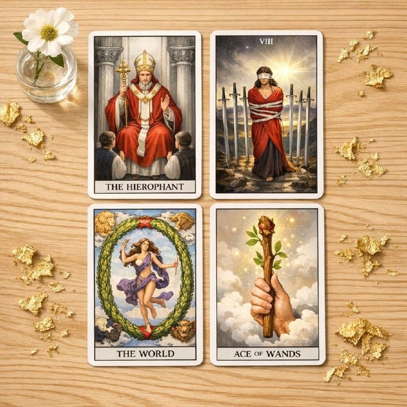 ✨ Мы входим в зону турбулентности и колоссальных возможностей. Переход Урана в знак Близнецов открывает новую семилетнюю главу, а жесткое соединение планет в начале недели требует предельной концентрации. Это время для тех, кто готов играть по-крупному. 🏛 1 вариант — Иерофант Неделя опоры на ценности и систему. В хаосе обновлений ваша сила в традициях, обучении и следовании этике. Иерофант указывает на важность наставничества и работы в рамках структуры. Идеальное время для получения официальных документов, обращения к экспертам или начала серьезного обучения. Идите проверенным путем, и успех будет фундаментальным. ⚔️ 2 вариант — Восьмерка Мечей Аркан указывает на ментальные ограничения. Вы можете чувствовать скованность обстоятельствами, но помните: путы только в вашей голове. Уран в Близнецах требует от вас сбросить старые убеждения. Посмотрите на ситуацию под другим углом. Выход ближе, чем кажется. Достаточно сделать шаг из зоны комфортного бездействия и страха навстречу правде.