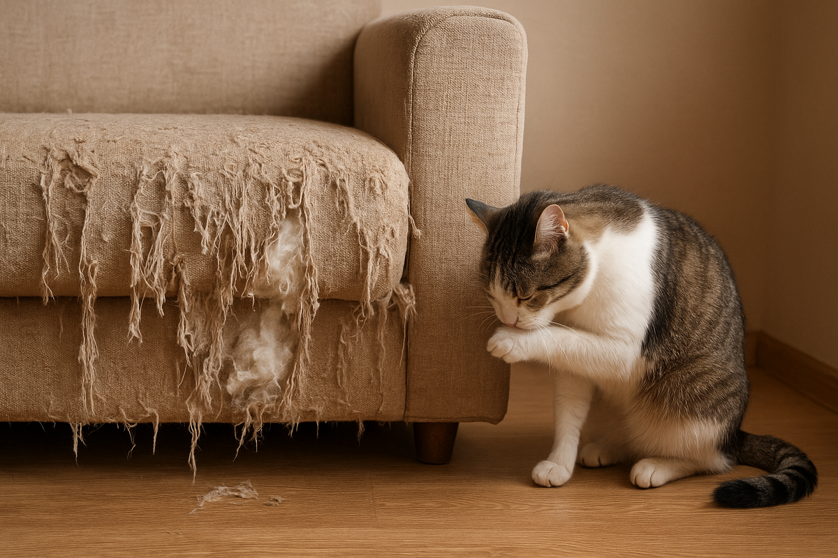 Что можно сделать сегодня вечером: найдите на диване главный «рабочий» угол и поставьте когтеточку рядом на пару дней, проверив, что она не шатается.