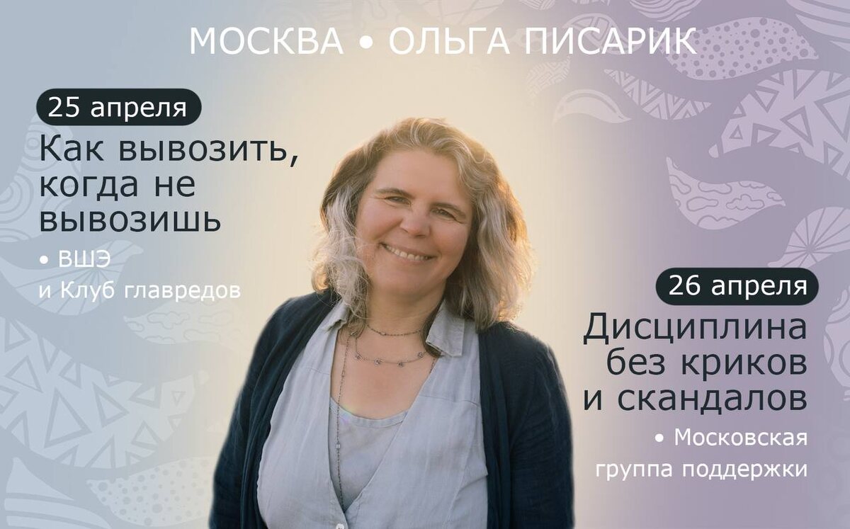 Очные встречи в Москве с директором русскоязычного кампуса Института Ньюфелда🌱 Дорогие участники Московской группы поддержки! Долгожданные семинары с Ольгой Писарик пройдут уже в следующие выходные! Успевайте занять места 🙂 Два события, разных по формату, но объединенных одной целью: помочь нам стать надежной опорой для себя и своих близких. 🤩🤩🤩🤩 25 апреля 🤩🤩🤩🤩 Семинар: «Как вывозить, когда не вывозишь» Бывает ощущение, что крепко стоишь на ногах, но иногда опоры расшатываются, а силы будто утекают. Лекция и практикум для тех, кто много несет на себе, много вкладывается в семью, работу, отношения с клиентами и сотрудниками. 🤩Организатор: Клуб Главредов 🤩Москва, НИУ ВШЭ 🤩Начало в 11:00 👉 УЗНАТЬ ПОДРОБНЕЕ Семинар: «Как вывозить, когда не вывозишь» 🤩🤩🤩🤩 26 апреля 🤩🤩🤩🤩 Семинар: «Как перестать повторять сто раз одно и то же: дисциплина без криков и скандалов» Естественное желание ребёнка быть хорошим для родителя, с которым он в активной глубокой привязанност