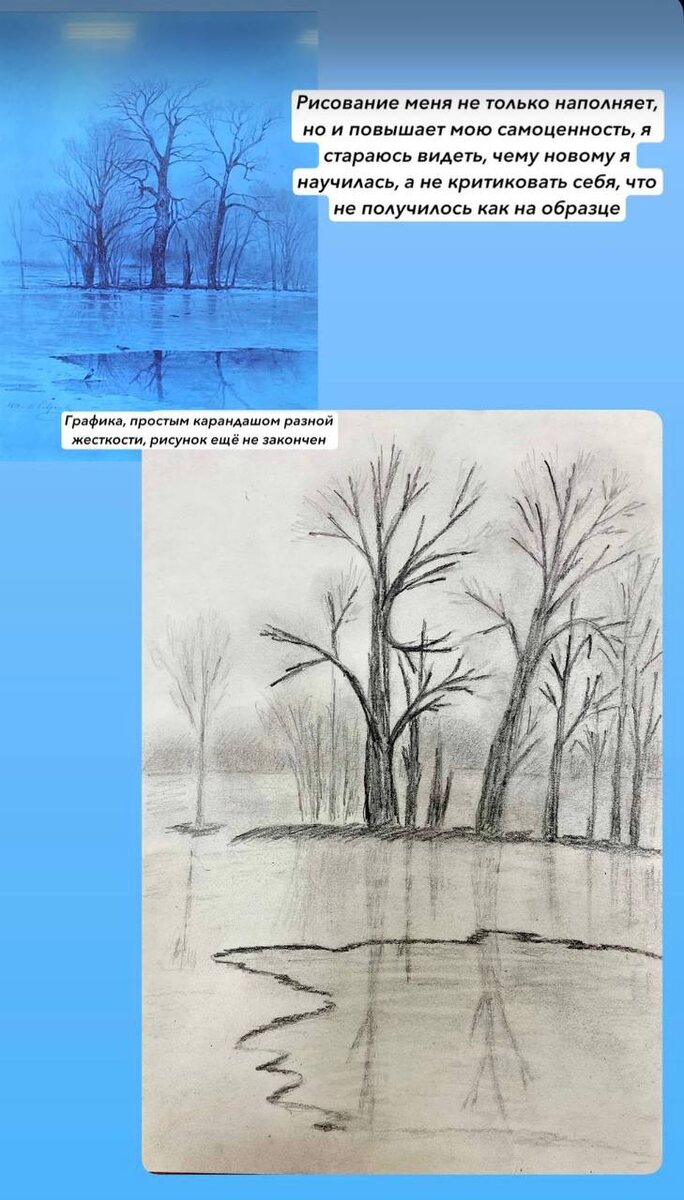 Люблю ходить на рисование - это настоящее творчество, радуюсь искренне , когда получается что то похожее с оригиналом, а когда не очень похоже, ищу плюсы из серии «я художник, я так вижу»)) Попробовали на прошлом занятии графику карандашами разной жестокости, интересный опыт, рисунок ещё не закончен до конца 🏡Дом в СНТ это отдельная любовь и надеюсь со временем он станет семейно-родовым гнездом, когда будет собираться за боль столом три поколения Ps. Девочки, у кого есть дача, у меня у малины листочки появились, но начинают буреть, в бордовый цвет уходить по краям , не понимаю, это от того что холодно или от недостатка микроэлементов? Поделитесь кто знает 🙏