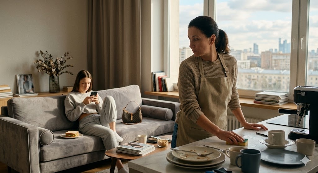 Я пыталась оправдывать ее. Говорила себе: «Ей тяжело, она учится, пытается заработать. А я все равно сижу дома. Мне не трудно». Я стирала, гладила, убирала, готовила завтраки, обеды и ужины. Мои дни слились в бесконечную череду бытовых ритуалов. Я перестала искать работу — просто не было сил и времени. Я превратилась в тень, скользящую по квартире с тряпкой в руках.