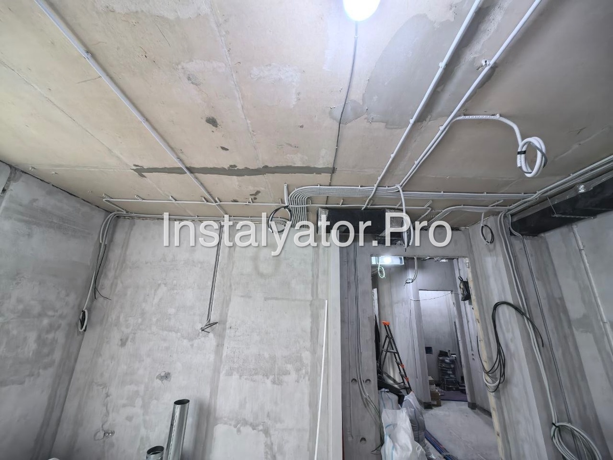 Большинство людей видят умный дом уже готовым: аккуратные выключатели, невидимые кабели, свет по сценарию. Мало кто видит, что происходит до этого. Показываем изнутри. На фотографиях — реальный объект Instalyator.Pro на стадии чернового монтажа. Квартира в новостройке, стены открыты, потолок ещё не закрыт. Именно сейчас — единственный момент, когда умный дом можно сделать правильно. Кабельная разводка умного дома — что прокладывают до штукатурки Каждая гофротруба на фото — это отдельная кабельная линия к конкретной группе освещения, выключателю или климатическому устройству. Никаких объединений «на потом», никакой экономии на трассах. Каждая линия идёт туда, куда предписывает проект. Белые трубы — силовые кабели питания. Серые гофры — управляющие слаботочные линии к выключателям и датчикам. Чёрные кольца на потолке — запас кабеля в точках будущих светильников: когда дизайнер финально утвердит их расположение, у монтажников будет резерв без штробления. Сколько кабеля уходит на квартиру