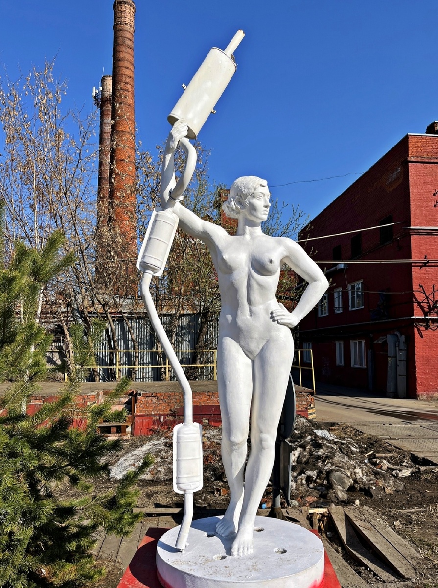 Анастасия, белое бетонное изваяние на территории бывшшего завода "Кристалл", как всегда держала в правой руке автомобильный глушитель. Стоял не по-мартовски тёплый день. Тимофей, проходя мимо, вдруг остановился, бросив чуть смущённый взгляд на скульптуру прекрасной обнажённой спортсменки. "Зачем ей глушитель?" - подумал он? "Её кто-то попросил подержать?" Вдруг он отчётливо понял, - его совсем не волнует этот парадокс. Он был весь поглощён впечатлением от очарования её наготы и идеальной пропорциональности фигуры. "Вместо выхлопной трубы она должна была держать весло. Это шутливое сравнение глушителя и классического весла обусловило её появление здесь, как некого указателя музея "Автомобили мира". Тим вспомнил модное слово - у маркетологов есть такой термин "стоппер".