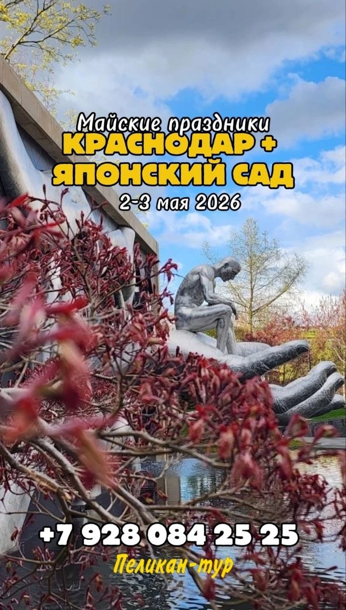 Экскурсионный Тур в Краснодар на 02.05-03.05.2026 ‼️ВНИМАНИЕ МЕСТА ОГРАНИЧЕНЫ ‼️ 👘 2 дня/1ночь 🏮 Выезд утром в 2 мая ориентировочно 05:00 План нашего путешествия: 📅 1- ый день 🛎 Заселение в отель 🌺 Вечером едем в сказочный парк Галицкого на экскурсию с гидом наслаждаться атмосферой парка, "Парком Облаков" и кроличья нора и гранд каньон. ⏰ Свободное время 📅 2-ой день ☀️ Ранний подъем выезд в японский сад ⛩ 🚌 Возвращение домой через Oz Молл Фирма оставляет право менять последовательность экскурсии с сохранением объектов посещения. Цена тура: 7500 Руб/Чел (в стоимость включен: проезд, проживание в отеле, экскурсия в парке, сопровождение. Доп расходы: Питание, Сувениры Информация о нас: 💜Наш адрес: г. Нальчик, пр. Ленина, 32, гост. Россия, оф. 245. 💜Подробнее на сайте: pelican07.ru 💜Позвоните: +7 928 084 25 25, +7 918 728 39 79