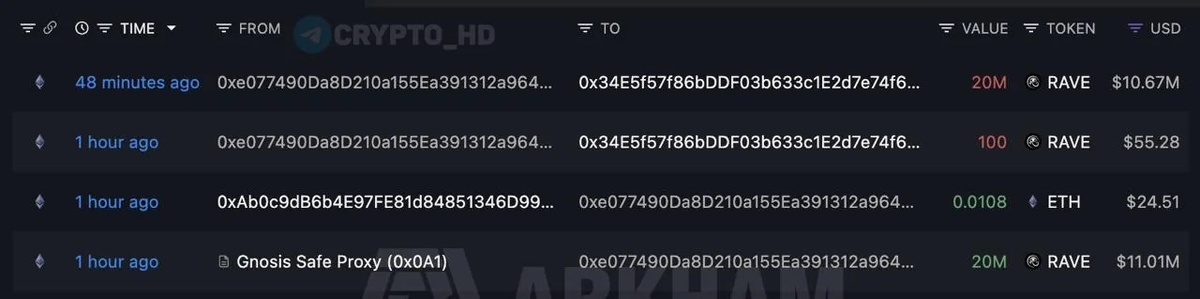 На криптобиржу Bitget переведены ещё 20 миллионов токенов RAVE