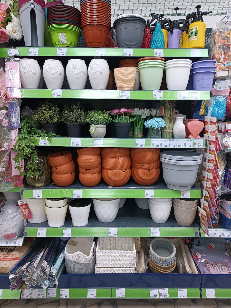В отделе для интерьера, что обычно первым показывала, ничего не нашла. Только секцию с горшками покажу, это, кажется, все уже было, но может наличие кому будет интересно
