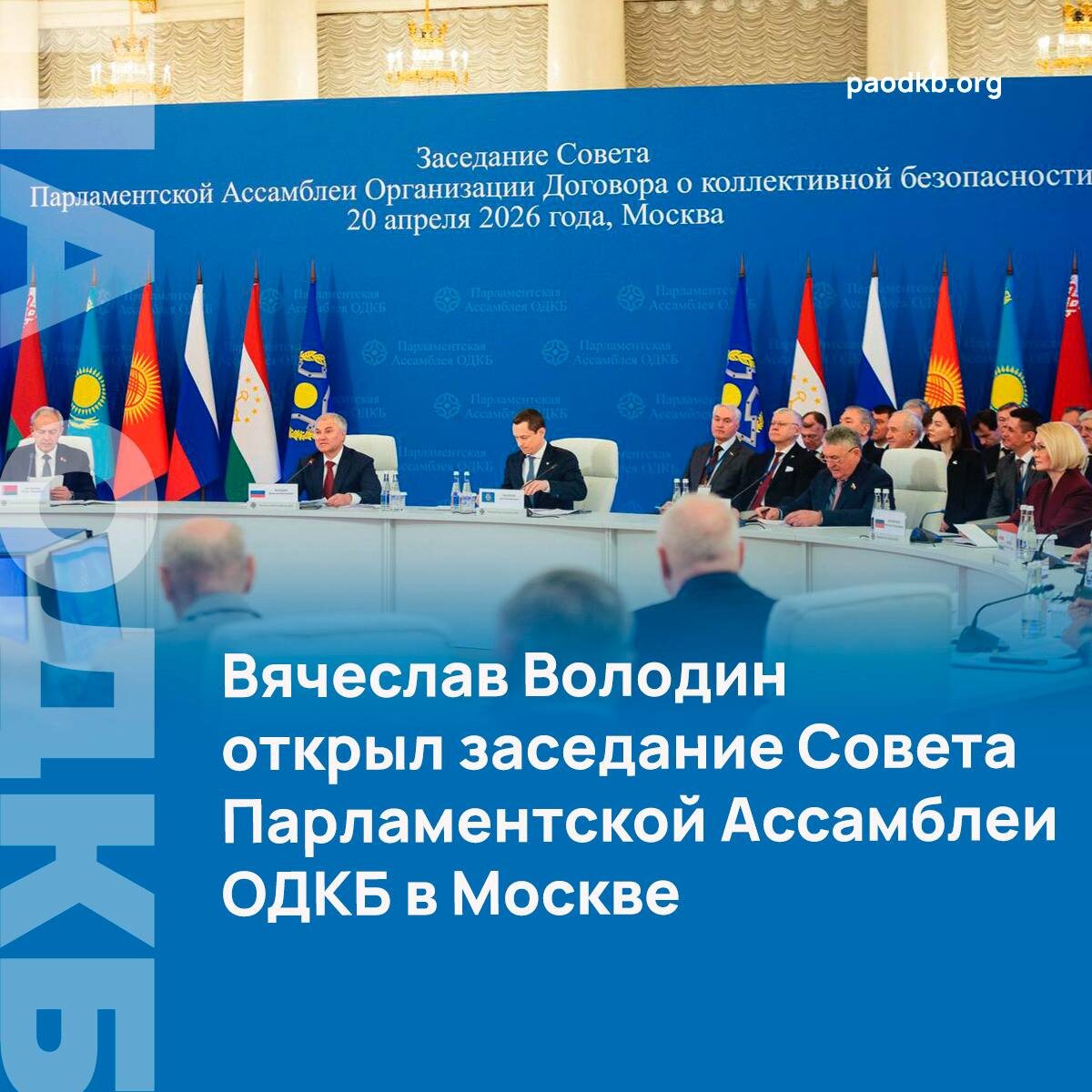 Ассамблею Организации Договора о коллективной безопасности, началось заседание Совета ПА ОДКБ. ✅ Мероприятие с участием глав парламентских делегаций государств-членов Организации проходит в Доме союзов. 🔷 Открывая встречу, Вячеслав Володин представил повестку дня, охватывающую широкий спектр вопросов: от глобальной безопасности до гармонизации национальных законодательств. 🔹 Центральное место в повестке заседания занимают вопросы внешней политики и коллективной обороны. Помимо глав парламентов, перед парламентариями выступит Министр иностранных дел России, Председатель Совета министров иностранных дел ОДКБ Сергей Лавров. Он представит доклад о реализации приоритетов российского председательства в Организации в 2026 году. 🗣Тему безопасности продолжит Генеральный секретарь ОДКБ Таалатбек Масадыков. Его выступление будет посвящено мерам по противодействию актуальным вызовам и угрозам, а также реализации решений ноябрьской сессии Совета коллективной безопасности 2025 года. ✅Особое