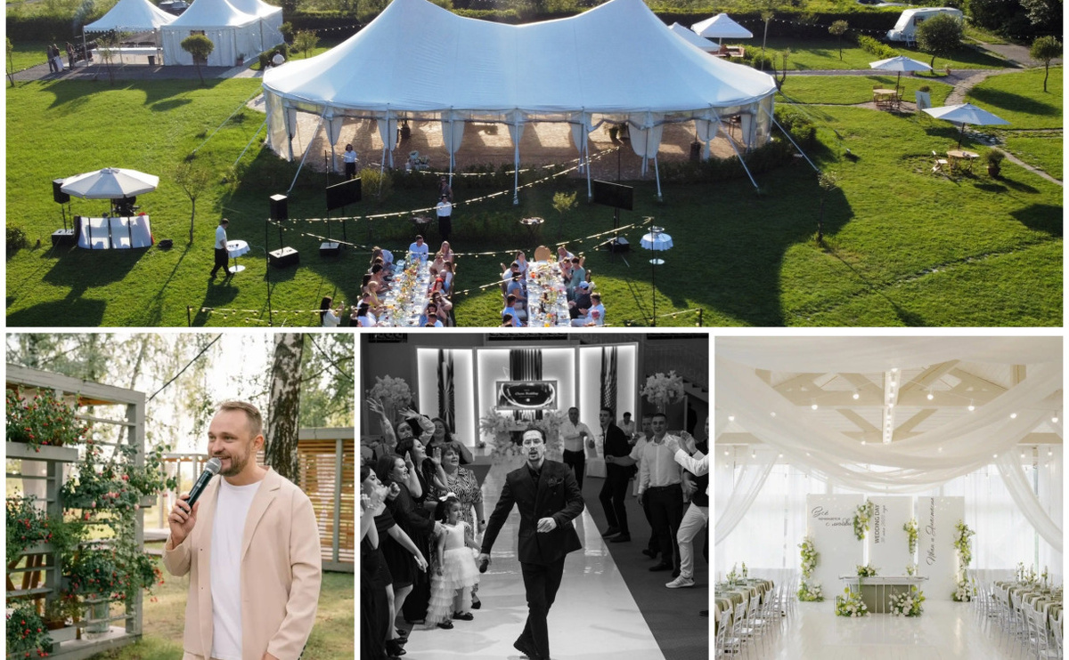 Первое, с чем мы столкнулись, — площадку лучше бронировать очень заблаговременно. В августе (практически за год) на нужную дату было не так много вариантов на открытом воздухе. Представьте: лето, все вокруг зеленое. Конечно, площадка на природе — в приоритете.