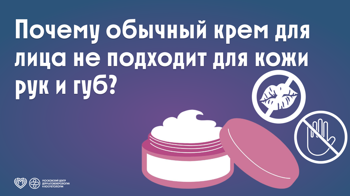 Зимой мороз, ветер и сухой воздух атакуют тонкие барьеры рук и губ. Эти зоны страдают первыми, потому что их защитный липидный слой тоньше, чем на лице. Кожа рук: Тоньше, чем на лице, Практически лишена сальных желёз, Постоянно контактирует с водой, моющими средствами, антисептиками. Крем для лица, в основном, ✔️ недостаточно плотный, ✔️ не содержит барьерных липидов, ✔️ не рассчитан на агрессивные внешние факторы. Кожа губ: Не имеет рогового слоя в классическом понимании, Полностью лишена сальных и потовых желёз, Быстро теряет влагу и повреждается. Крем для лица: ✔️ может вызывать раздражение, ✔️ не создаёт полноценной окклюзии, ✔️ не защищает от ветра и холода. ❗️ Обычный крем для лица легкий, на водной основе хорошо увлажняет, но быстро испаряется на морозе. Рукам и губам нужны окклюзивные (запирающие влагу) формулы с густой текстурой: церамидами, скваланом, маслами ши/жожоба. Крем для лица просто не выдержит ветра и холода — кожа высохнет еще быстрее. Частое использование антисепти