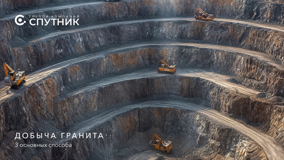 Гранит — это прочная порода, сформированная в результате медленного остывания магмы. Да, он обладает высокой прочностью, истираемостью, а изделия из него не требуют реставрации или замены на протяжении многих десятилетий. Однако важно понимать, что качество, внешний вид и даже стоимость готовых изделий во многом зависят не только от месторождения, но и от способа добычи. Именно технология извлечения блока из массива определяет его целостность, наличие скрытых дефектов и пригодность для дальнейшей обработки. Основные месторождения гранита в России находятся на Урале в Карелии и Ленинградской области. Подробнее о них мы рассказывали в статье «Месторождения гранита в России». Добыча ведётся на карьерах, которые представляют собой открытую выработку с системой уступов, по которым ведётся поэтапная разработка. Порода обычно залегает в виде монолитных массивов. Задача производителей — извлечь максимально крупные и целостные блоки, пригодные для последующей распиловки на слэбы и изготовления