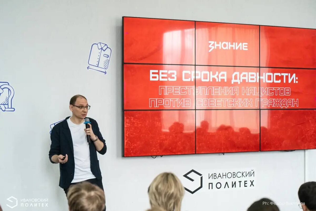 Ежегодно, 19 апреля в России проводится День единых действий в память о геноциде советского народа нацистами и их пособниками в годы Великой Отечественной войны. О том, что геноцид советского народа стал самой большой трагедией в российской истории, а огромное количество жертв того времени до сих пор это отражается на демографии нашей страны, студенты узнали на открытой лекции. Ее провели кандидат философских наук, доцент кафедры организации производства и городского хозяйства Елена Смирнова и лектор Общества «Знание», директор Ивановского Дома национальностей Борис Мурванидзе. Мероприятия прошли в рамках Комплексного плана по противодействию распространения терроризма и деструктивных движений в ИВГПУ. 👻 ИВГПУ в MAX | 📲 ИВГПУ в ВК 👻 Приемная комиссия ИВГПУ
