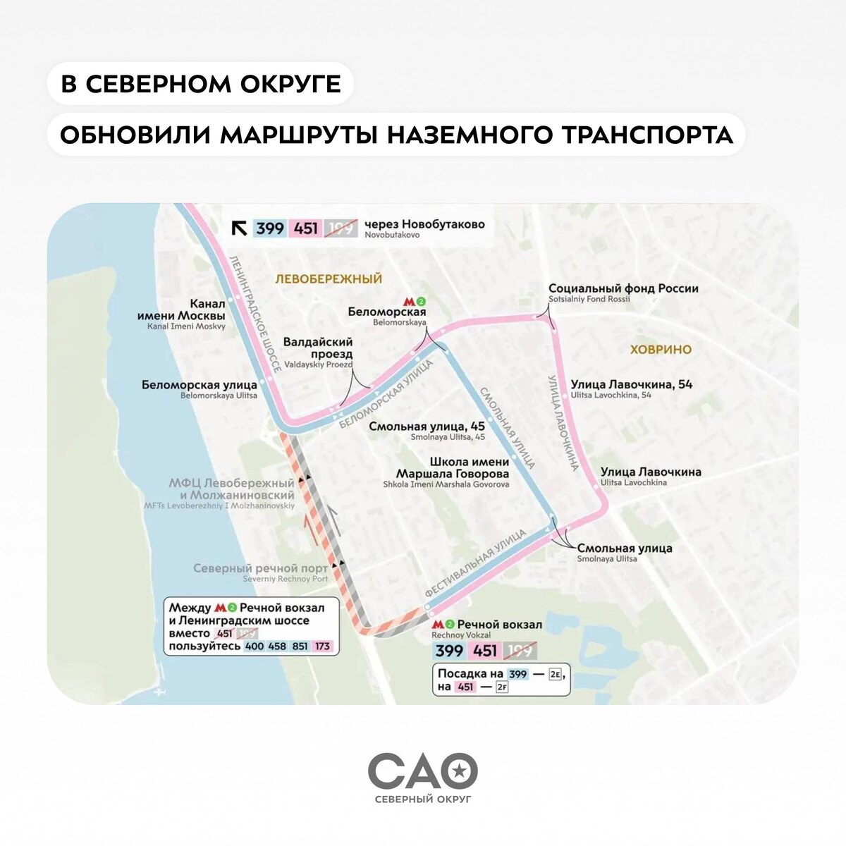 Транспортная схема стала удобнее: автобусы ходят чаще, а маршруты проходят ближе к жилым кварталам и ключевым точкам районов. Что изменилось👇 💙маршрут №199 заменили на №399 💙маршруты скорректировали с учётом новых жилых кварталов 💙часть Ленинградского шоссе исключили из схемы движения 💙движение организовали в обе стороны по Беломорской, Смольной и Фестивальной улицам 💙социальный маршрут №451 теперь проходит по Беломорской, Лавочкина и Фестивальной улицам Теперь жители смогут быстрее и удобнее добираться до станций Замоскворецкой линии метро❤️ 📲 Префектура САО теперь в MAX