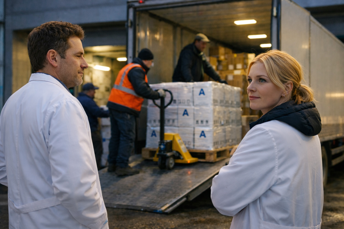 Груз прибыл поздно вечером. Я встречала его сама – вышла во двор в куртке поверх белого халата, стояла на холоде и смотрела, как разгружают паллеты. Данила находился рядом. Мы не разговаривали. Ящики уходили на склад один за другим, методично, под опись. Восемнадцать тонн. Целые. Нетронутые. С печатями.