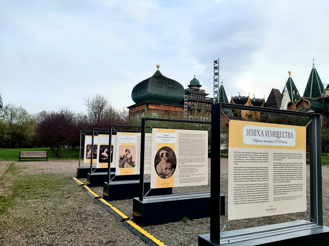 C северной стороны дворца царя Алексея Михайловича в парковой зоне представлены графические портреты дам удивительной судьбы, которые внесли свой вклад в развитие культуры, образования, здравоохранения, и навсегда остались в истории нашей страны.