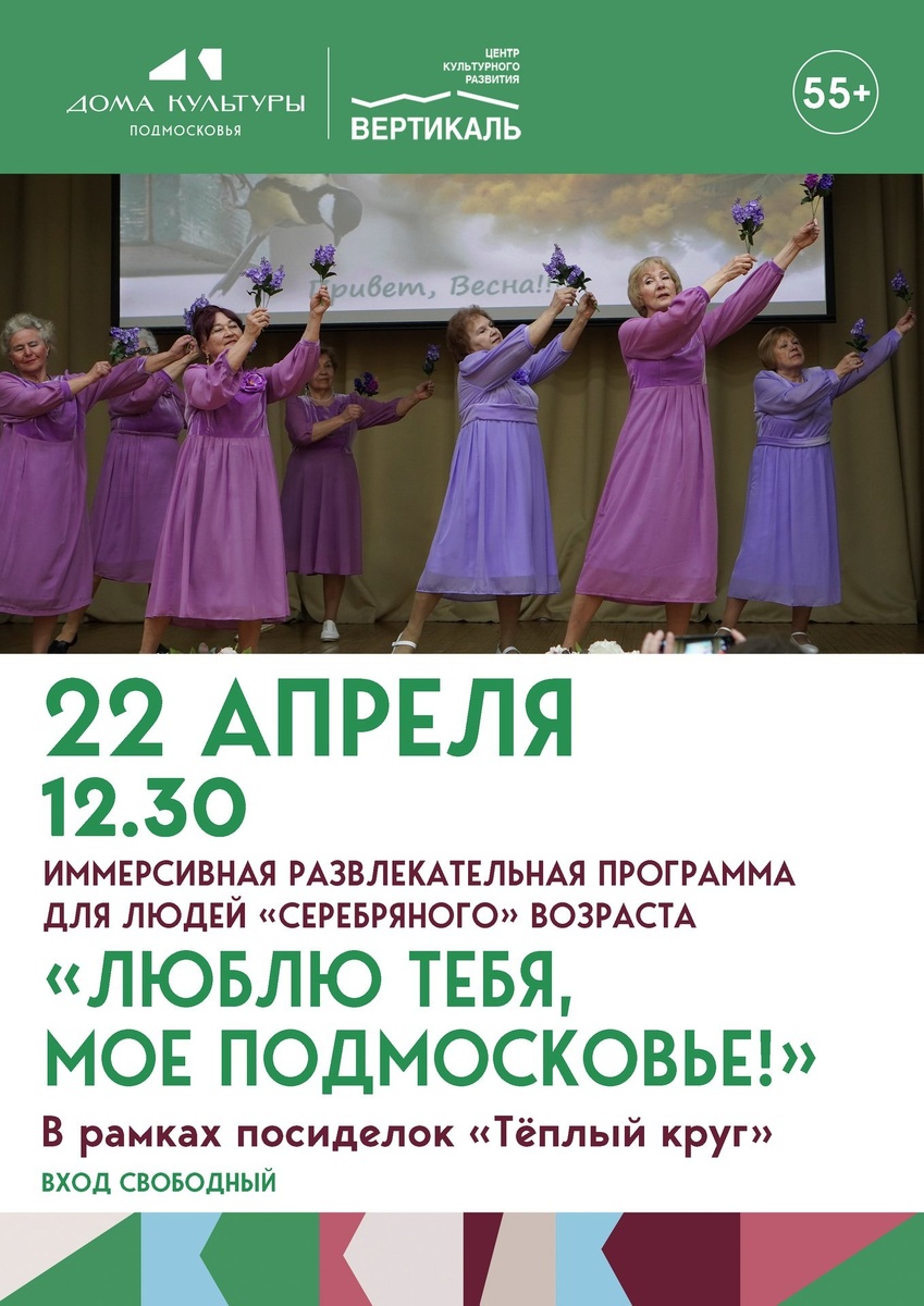✨ Познавательная программа в рамках посиделок «Теплый круг» Приглашаем пущинцев серебряного возраста 💫 👉Познакомимся с удивительным городом Подмосковья - Серпуховым, посмотрим видео интересных мест, вспомним историю древнего города, поучаствуем в викторине и насладимся ароматным чаем со сладостями. 🎤Ведущая – Светлана Шабанова 🚫 Возраст: 55+ 📆 22.04.2026 🕒 12:30 🏢 ЦРК "Вертикаль" г. Пущино 📍 г.о. Серпухов, г. Пущино, проспект Науки, 7 💰 Вход свободный❗️ ⭐Поддержать канал голосом 💰 Канал Вакансии Серпухова ✅ Мероприятия Серпухов https://dzen.ru/id/66f01c6eb4c6fe60c9ca1608 https://vk.ru/serpukhov_events http://dzen.ru/serpukhov_events