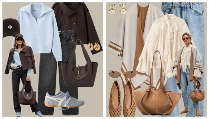 Весна — это идеальное время, чтобы обновить гардероб и вдохнуть в образы лёгкость, свежесть и немного расслабленного шика. В нашей подборке готовые формулы стильных сетов, которые легко повторить в реальной жизни. Разбираем каждый образ и берём на заметку ключевые приёмы. Полоска добавляет динамики, светлые брюки освежают, а тёмная куртка собирает образ. Аксессуары в тёплом карамельном оттенке делают комплект мягче и дороже на вид. Светло-голубая джинсовая куртка и мягкий кардиган в молочном оттенке — идеальный баланс фактур. Образ выглядит уютным, но при этом аккуратным. Коричневые аксессуары добавляют глубины. Полосатая футболка, чёрные брюки и кардиган — база, которая всегда работает. Здесь важна чистота линий и качество посадки. Крупная сумка и балетки делают образ современным. Бежевый пиджак + джинсы + светлая рубашка — это уже почти униформа весны. Добавьте солнцезащитные очки и вместительную сумку — и образ готов для города. Классический тренч и деним могут выглядеть совсем инач