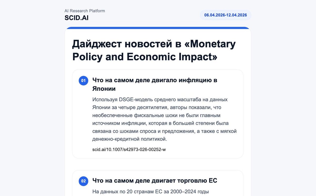 Теперь в scid.ai вы можете получать еженедельные дайджесты с хайлайтами научных статей по выбранным исследовательским темам. 🔹 Подборка формируется по вашим персонализированным темам 🔹 Темы можно выбрать в настройках профиля 🔹 Или прямо на страницах статей во время исследования Так вы сможете отслеживать только те публикации, которые действительно относятся к вашей области интересов. 🔗 Настроить дайджесты: https://scid.ai/profile?tab=digests scid.ai
