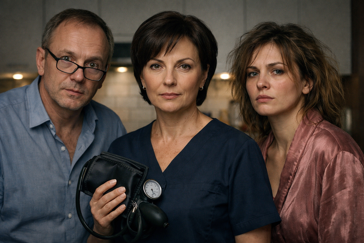 Она открыла сумку и достала тонометр — надежный, с тугой черной манжетой. Начала медленно наматывать трубку на манометр.