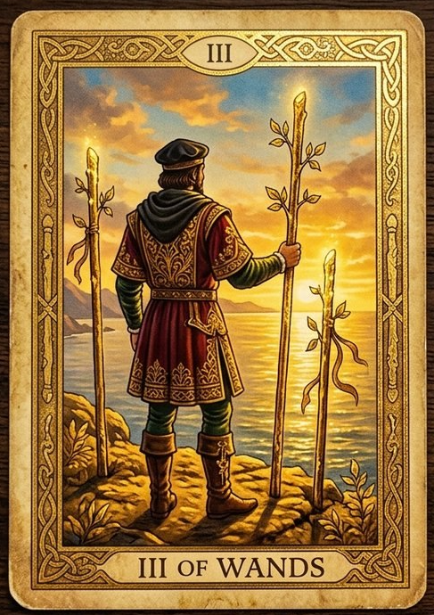 Сегодня разбираем третью карту масти Жезлов — 3 Жезлов. Если 2 Жезлов — это выбор направления и взгляд вдаль, то 3 Жезлов — это первые результаты и расширение视野. Многие думают: «3 Жезлов? Человек стоит и смотрит на корабли. И что?» 🛑 Стоп. 3 Жезлов — это момент, когда вы уже сделали выбор, уже начали двигаться и теперь видите первые плоды. Ваши усилия приносят результат. Не финальный, но первый. Корабли, которые вы отправили в плавание, возвращаются с товарами. Вы больше не просто смотрите вдаль — вы видите, как ваши мечты начинают материализоваться. Эта карта говорит: «Ты на правильном пути. Твои первые шаги уже дают всходы. Теперь можно расширяться». Давайте разберём 3 Жезлов по моей тактике: Образ → Аффирмация → Дыхание.