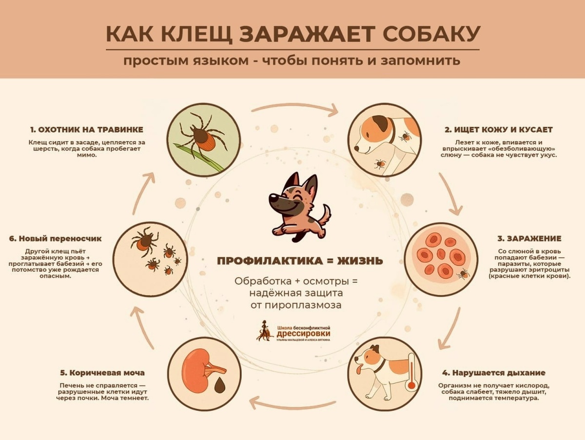Если вы заметили у собаки не характерное для нее поведение, необходимо внимательно проанализировать последние недели жизни животного. Вспомнить, не снимали ли клещей, возможно было общение с сородичами (случай переползания клеща при контакте собак) и т.д. И в срочном порядке обратиться за помощью к ветеринароному врачу.