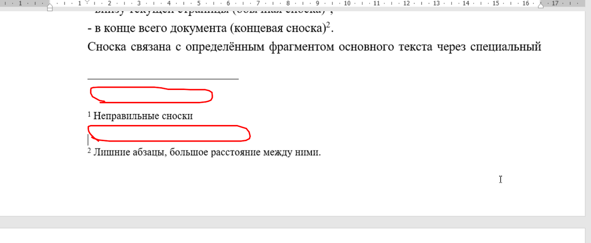 Внизу экрана отобразятся все сноски страницы. 3. Удалите лишние абзацы в сносках: