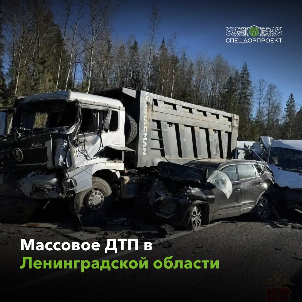 : 13 пострадавших По информации МВД, около 07:20 на 97-м километре автодороги А-120 «Санкт-Петербургское южное полукольцо» грузовик Shacman, двигавшийся от Отрадного в сторону Гатчины, спровоцировал аварию с участием четырёх машин: микроавтобуса Mercedes Sprinter, Chery Tiggo, грузовика DAF с прицепом и Renault Logan. В результате массового ДТП травмы получили 13 человек, один из пострадавших находится в тяжёлом состоянии. Со слов водителя Shacman, у его автомобиля отказали тормоза, после чего он «собрал» цепочку столкновений. На месте происшествия работает следственно-оперативная группа, решается вопрос о возбуждении уголовного дела по статье 264 УК РФ.