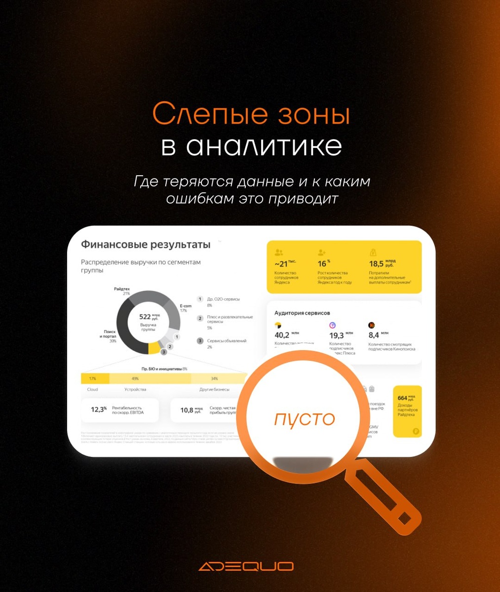 По отчету хочется быстро понять: работает канал или нет, растет спрос или проседает. Но отчет редко покажет всю картину. Часть данных теряется по пути, и вместе с ними теряется часть смысла. А значит, и решения по такой аналитике можно принять неверные. 🙌 Разобрали, где именно пропадает информация, к чему это приводит и что открыть кроме отчета.