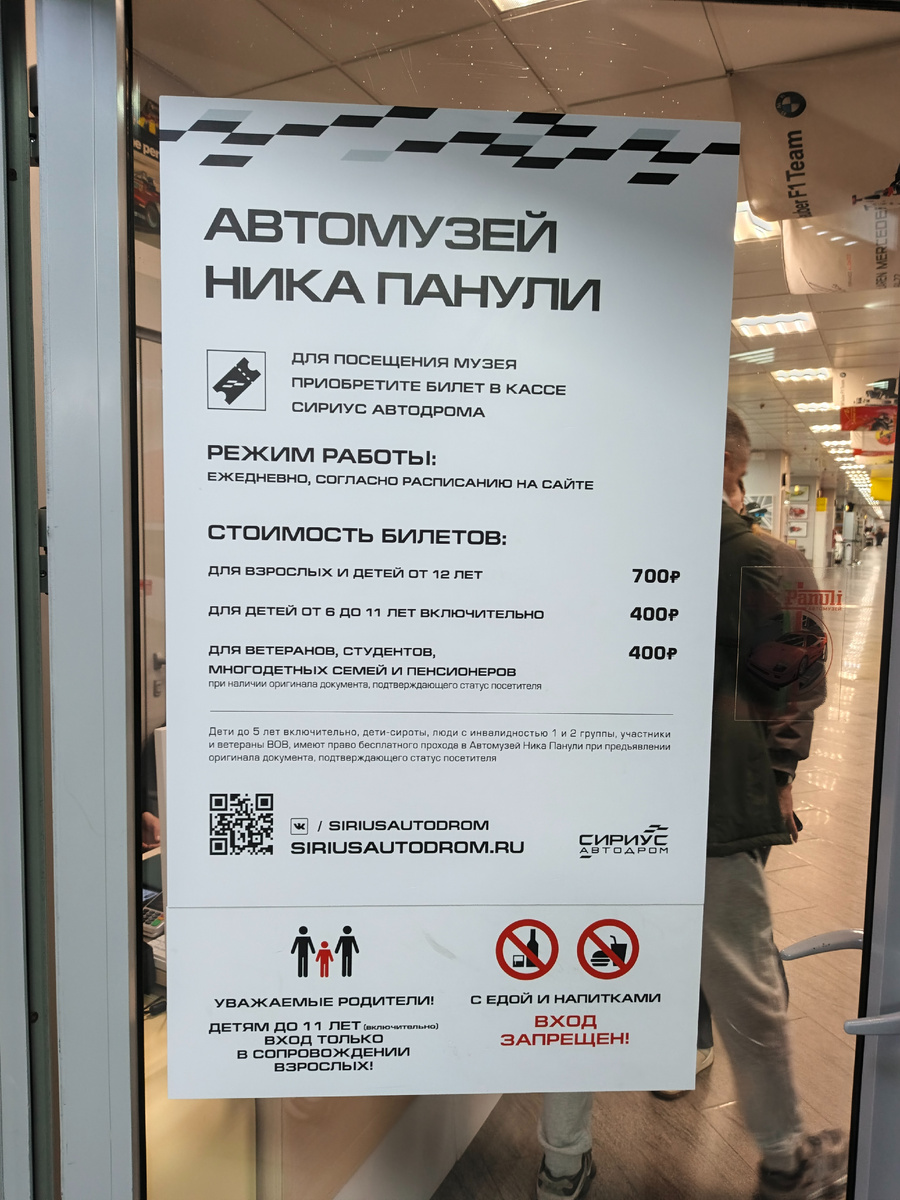 Продолжаю рассказывать о нашей поездке в Сочи на выходные. Начало: После картинга, бурно комментируя заезд, на эмоциях мы отправились в музей автомашин. Мне и самой было интересно там побывать. У Максима есть увлечение-дрифт. Мне постоянно что-то рассказывает, показывает видео, у него Царегравцевы вроде, как фавориты, это сын и отец. Вот он хотел их списанные машины посмотреть в музее. И другие какие-то..... Здание музея большое. Тут в одном крыле музей Панули, а через другой выход на автодром. В середине мастер класс по сборке моделек, там же можно погонять на них по пульту. Вход в здание через досмотр. У меня ножик забрали с рюкзака. Внутри перед кассой диванчики, ящики для сумок, чистые туалеты, автоматы с кофе....Потом на видео попадет обзорчик. Еще тут столы и минимакеты Сириуса и Олимпийской деревни. Вход в музей 700 руб с человека. Есть льготы. У меня прошла, взяли 400 руб. Сам музей не большой. Но машины красивые! Грамоты, награды, кубки. Манекены, форма разных лет. Модельки м